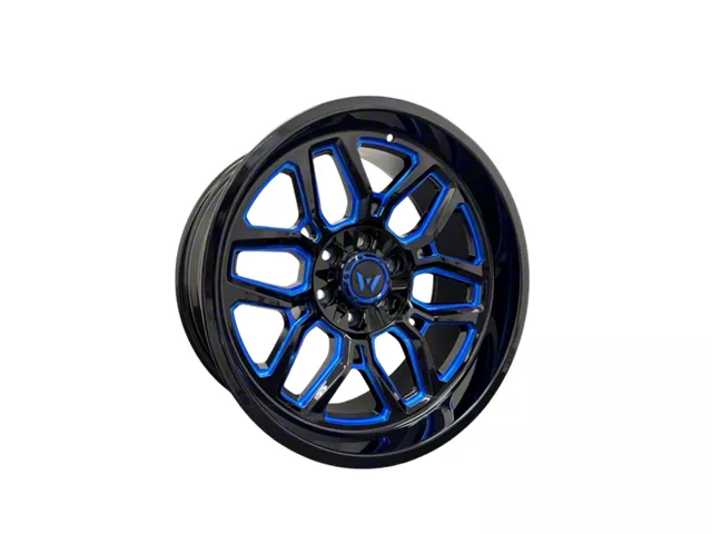Western Wheels RANGER Gloss Black with Blue Milling 6-Lug Wheel; 22x12; -44mm Offset This wheel features an exceptional design that enhances the aesthetic appeal of your vehicle. Its robust build and refined finish make it a premium addition to any compatible truck.