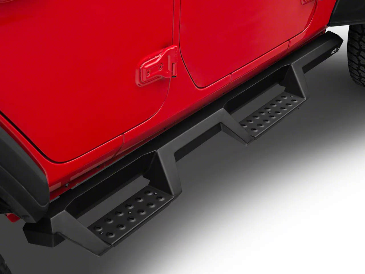 Application. The textured black HDX Drop Nerf Side Step Bars will fit all 2018-2026 Jeep Wrangler JL 4 door models.