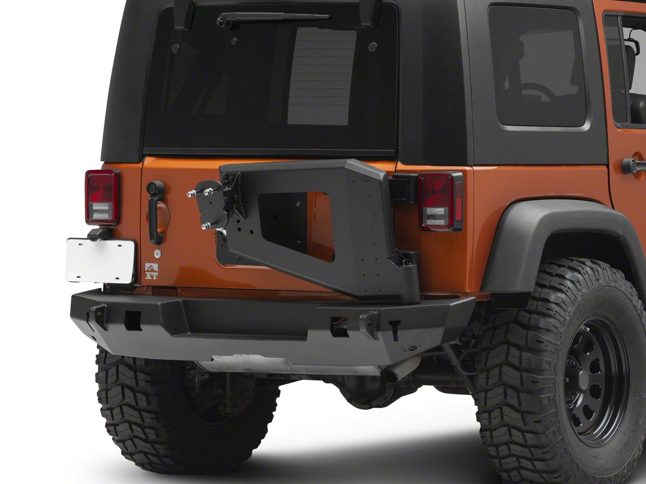 Smooth-Operating Tire Carrier. These WJ2 Textured Black Rear Bumper with Tire Carrier’s tire carrier is designed for smooth operation without compromising carrier rigidity. This is achieved by heavy-duty tapered roller bearings 2 turnbuckle heim links. This tire carrier’s versatile design allows use with or without a rear hitch.