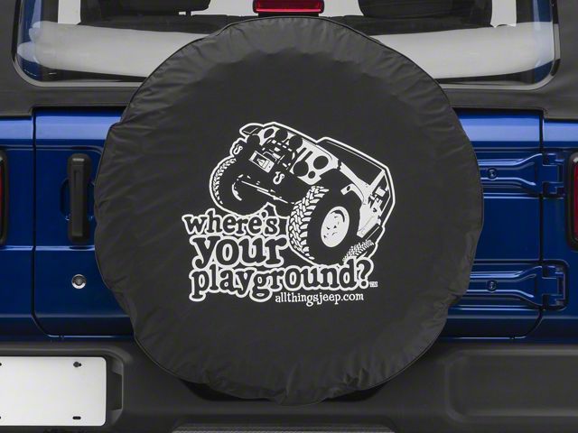 Application. This Where's Your Playground Spare Tire Cover is designed to fit all 1966-2018 Jeep CJ and Wrangler Models models. This Spare Tire Cover does not have an opening/cutout for vehicles equipped with a Spare Tire center mounted backup camera.