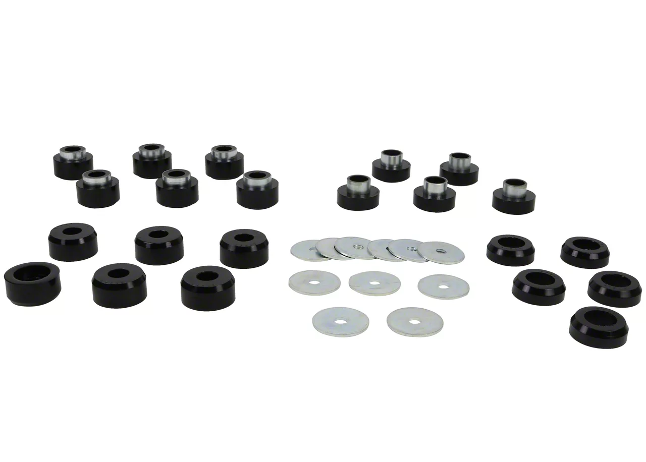 Foundation of Control. These Whiteline Body Mount and Radiator Support Bushings improve vehicle stability. By effectively controlling body roll and reducing unwanted chassis flex, they enhance cornering performance and provide a more confident driving experience, both on and off-road.