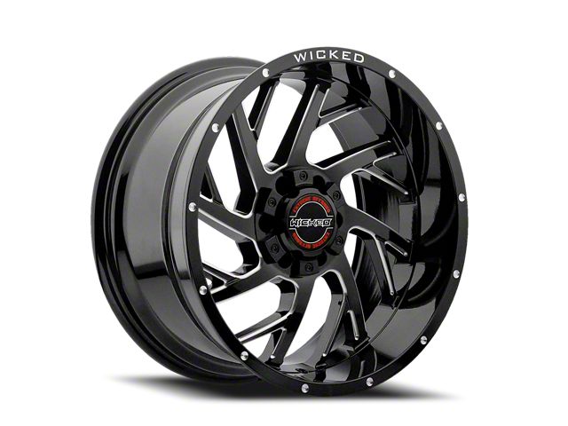 This 20x9 Wicked Offroad W930 Gloss Black Milled 6-Lug Wheel; 20x9; 0mm Offset is completed in a high-quality gloss black finish with steel milled accents that will be the envy of everyone. For added protection and looks, there is a clear coat designed to handle whatever the road, or beyond, throws at it.