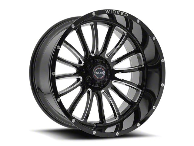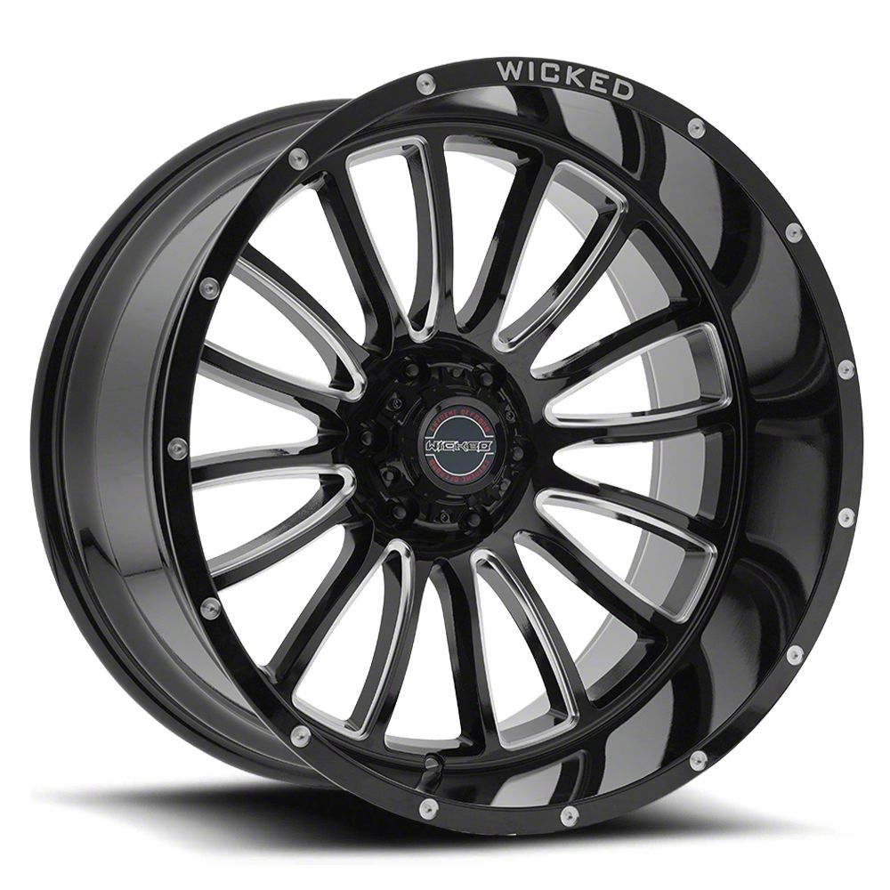 Gloss Black Finish with Milled Accents. This Wicked Extreme Off-road Wheel has a high quality, black finish that features milled accents for an impressive appearance. For added protection and good looks, this Wheel is completed in a durable, gloss clear coat that is tough enough to stand up against the hazards of everyday driving - including road chips and pitting.