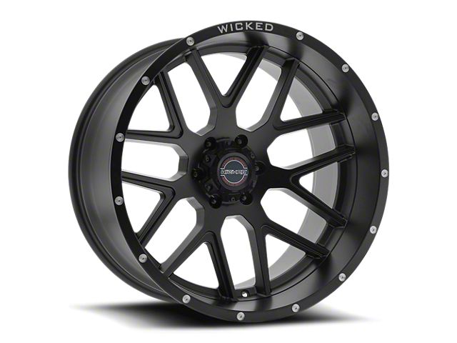 Satin Black Finish with Milled Accents. This Wicked Extreme Off-road Wheel has a high quality, black finish that features milled accents for an impressive appearance. For added protection and good looks, this Wheel is completed in a durable, satin clear coat that is tough enough to stand up against the hazards of everyday driving - including road chips and pitting.