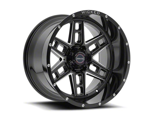 Gloss Black Finish with Milled Accents. This Wicked Extreme Off-road Wheel has a high quality, black finish that features milled accents for an impressive appearance. For added protection and good looks, this Wheel is completed in a durable, gloss clear coat that is tough enough to stand up against the hazards of everyday driving - including road chips and pitting.