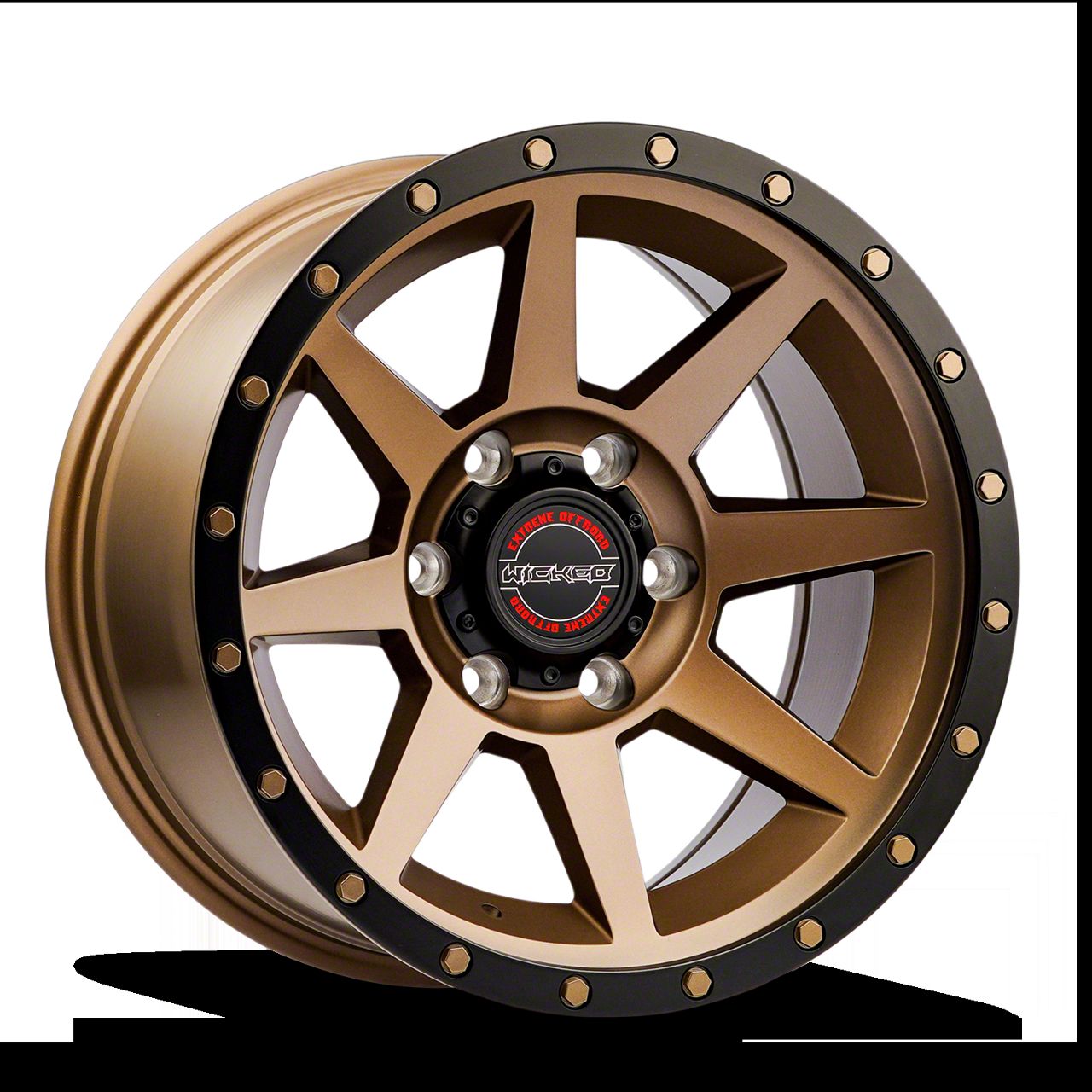 Wicked Offroad W935 Bronze Center with Black Lip 6-Lug Wheel; 17x9; 0mm Offset offers a striking balance between style and durability. The design speaks to the brand's commitment to quality, enhancing the vehicle's appearance with its distinct look. This wheel, with its unique aesthetics, is ideal for drivers who appreciate a blend of modern design and robust functionality.