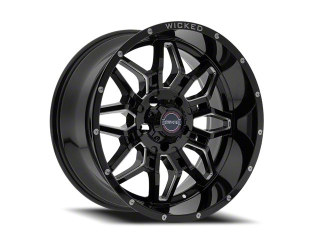 Wicked Offroad W909 Gloss Black Milled Wheel; 20x10. The Wicked Offroad W909 Gloss Black Milled Wheel offers a striking balance of style and refinement. Its unique design accentuates the vehicle's aesthetic, while the premium construction underscores its robust nature. This wheel is a perfect choice for those seeking both elegance and a strong visual statement.