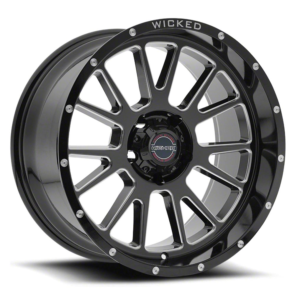Gloss Black Finish with Milled Accents. This Wicked Extreme Off-road Wheel has a high quality, black finish that features milled accents for an impressive appearance. For added protection and good looks, this Wheel is completed in a durable, gloss clear coat that is tough enough to stand up against the hazards of everyday driving - including road chips and pitting.
