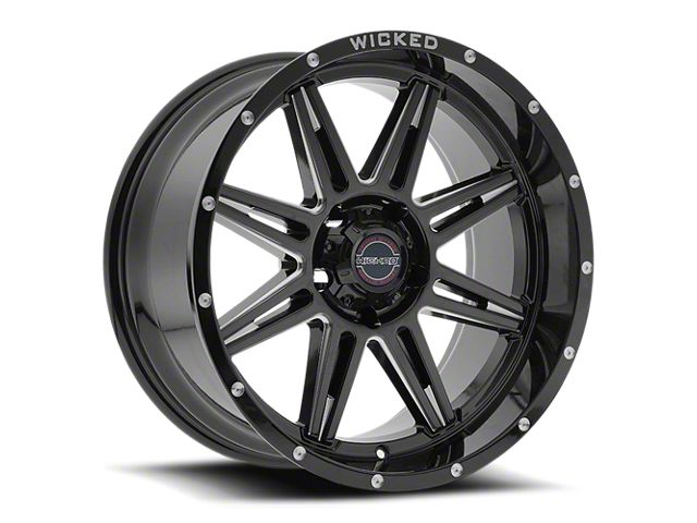 Gloss Black Finish with Milled Accents. This Wicked Extreme Off-road Wheel has a high quality, black finish that features milled accents for an impressive appearance. For added protection and good looks, this Wheel is completed in a durable, gloss clear coat that is tough enough to stand up against the hazards of everyday driving - including road chips and pitting.