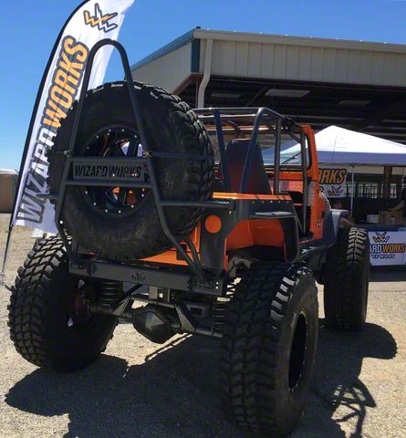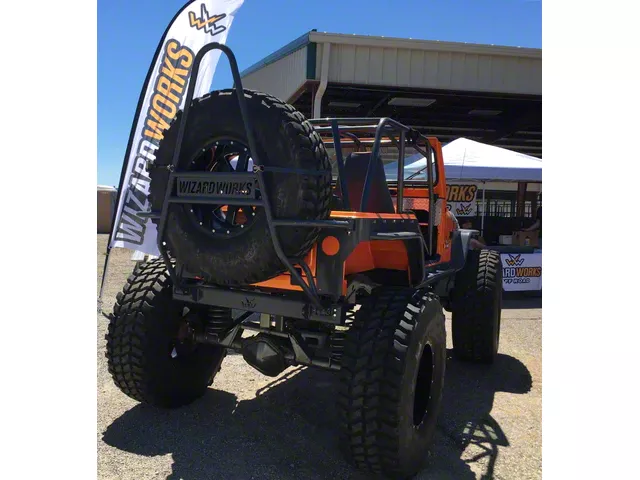 Durable. The Wizard Works Offroad Rear Bumper with Swing Down Tire Carrier is made of high-quality materials and engineered to endure the challenges of venturing off-road. Despite facing rugged terrain and adverse environmental situations, it sustains its structural stability with ease.