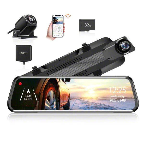 First-Rate Functional Design. The WOLFBOX Wi-Fi Dual Mirror Monitor Dash Cam is a versatile and advanced addition to your vehicle, combining multiple features in one device. With its dual mirror monitor, it provides both a conventional rearview mirror and a 10-inch full touch screen display, offering improved visibility and convenience. The dash cam allows for instant Wi-Fi playback, enabling you to review recorded footage and share it conveniently with other devices. Engineered with multi smart mirror functions, it supports a range of functions such as GPS navigation, Bluetooth connectivity, and more, enhancing both your driving experience and safety.