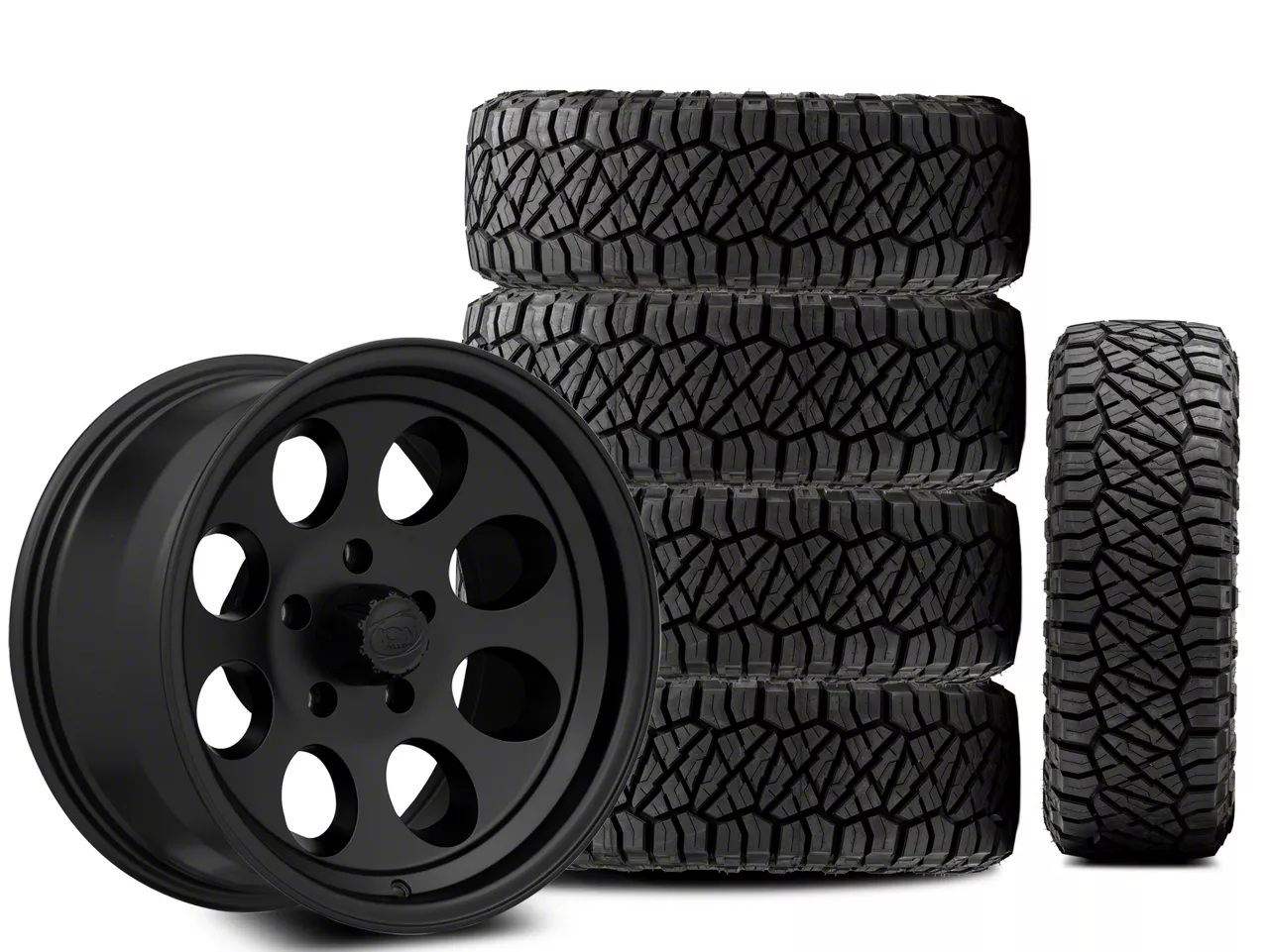 Mounted and Balanced Wheel and Tire Kit. This wheel and tire combo kit features (5) 17x9 TYPE 171 Matte Black Wheels and (5) NITTO Ridge Grappler A/T 33" - 285/70R17 tires that have been put together into an easy to buy kit that arrives to your door already mounted and balanced ready to be installed on your vehicle.