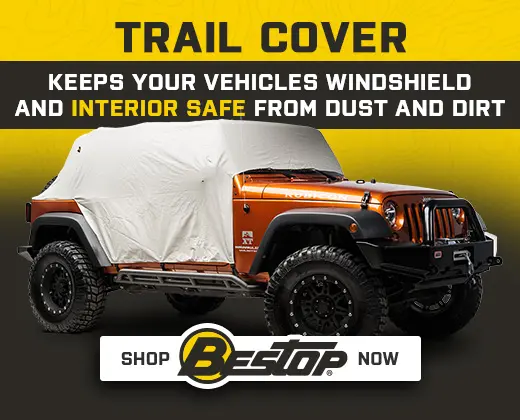 Several cover options are available for Jeep Wranglers. You have your basic covers that protect the entire vehicle from the elements when you’re not using them, more advanced, four-layer full-body covers, and much more. Plenty of Jeep rain cover options are also available. These covers often provide several layers of protection to keep your Wrangler safe through rain, snow, and other types of harsh weather conditions. If a garage isn't an option, a waterproof cover for the entire vehicle is often the best option. Another type of cover is a Jeep cab cover. These covers are only big enough to cover the cab of a Wrangler, which is perfect in emergencies where you might not have your soft or hard top on you. At ExtremeTerrain, we carry some unique Jeep covers you won't find elsewhere, like trail gear. These covers function as 2-in-1 covers that protect your Wrangler and give you space to camp out outside the car – almost like a small tent.