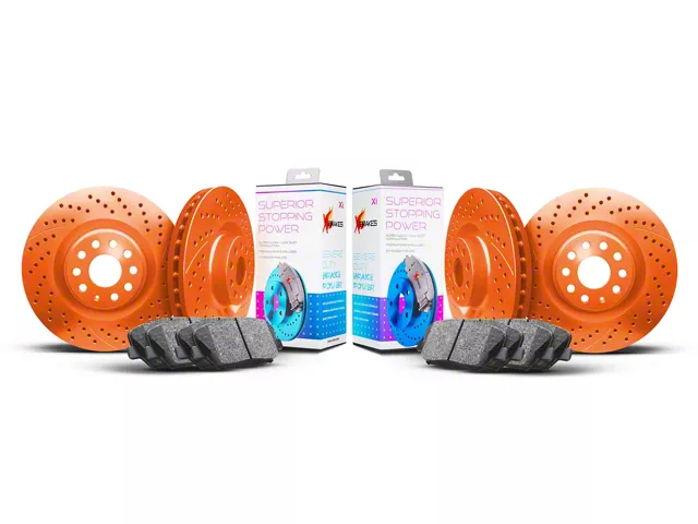Enhanced Stopping Power. This Xbrakes Xi Series kit delivers reliable, fade-resistant braking by combining precision cross-drilled and slotted rotors with high-friction ceramic pads. The rotor design evacuates heat and gases, maintaining consistent pad contact under repeated stops.