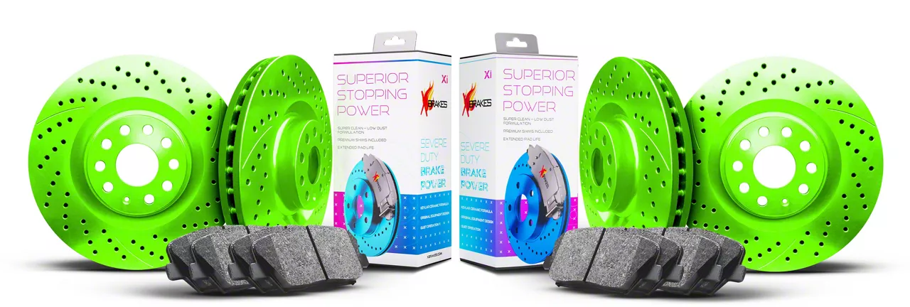 Xbrakes Xi Series 6-Lug Brake Rotor and Pad Kit; Front and Rear; Green (16-24 Titan XD)Find parts that fit my vehicle