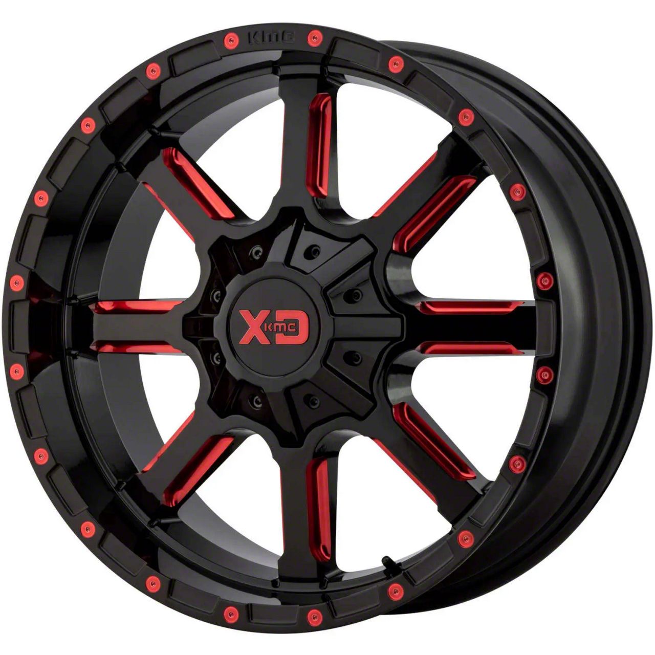 XD Mammoth Gloss Black Milled with Red Tint 6-Lug Wheel; 22x10; -18mm Offset. The XD Mammoth Gloss Black Milled with Red Tint 6-Lug Wheel offers a striking balance of style and refinement. Its unique design accentuates the vehicle's aesthetic, while the premium construction underscores its robust nature. This wheel is a perfect choice for those seeking both elegance and a strong visual statement.