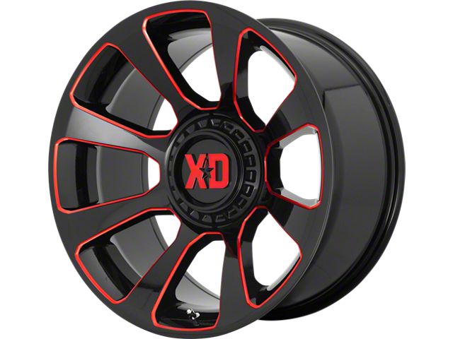 This 20x9 XD Reactor Gloss Black Milled with Red Tint 6-Lug Wheel is completed in a high-quality gloss black finish with milled accents and hints of red to create an impressive appearance. There's a durable clear coat that protects against driving hazards.