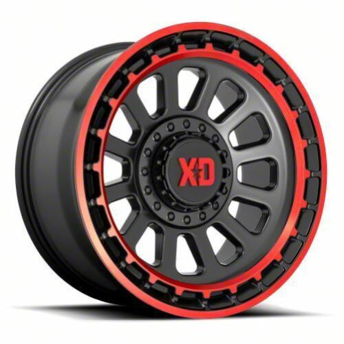 XD Omega Satin Black Machined with Red Tint 6-Lug Wheel; 17x9; 18mm Offset. The XD Omega Satin Black Machined with Red Tint 6-Lug Wheel; 17x9; 18mm Offset features a sleek and modern design that enhances the overall aesthetic of any vehicle. Its brushed gunmetal finish adds a touch of sophistication and complements various vehicle styles. This wheel's premium construction ensures durability and a robust appearance.