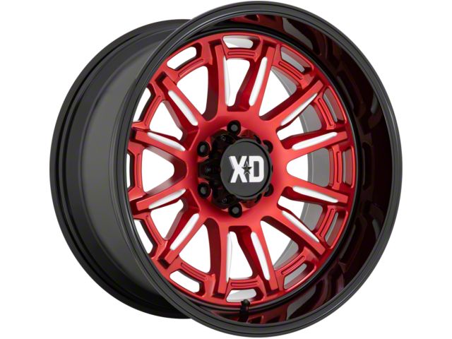 XD Phoenix Candy Red Milled with Black Lip 6-Lug Wheel; 20x10; -18mm Offset delivers a bold and modern aesthetic, ideal for enthusiasts seeking a refined yet assertive look for their vehicle. With its standout design and distinct finish, this wheel enhances the vehicle's visual stance and street presence. The precise craftsmanship and premium aluminum build reflect XD's dedication to quality and distinctive design. Whether parked or in motion, this wheel draws attention with its clean, aggressive styling.
