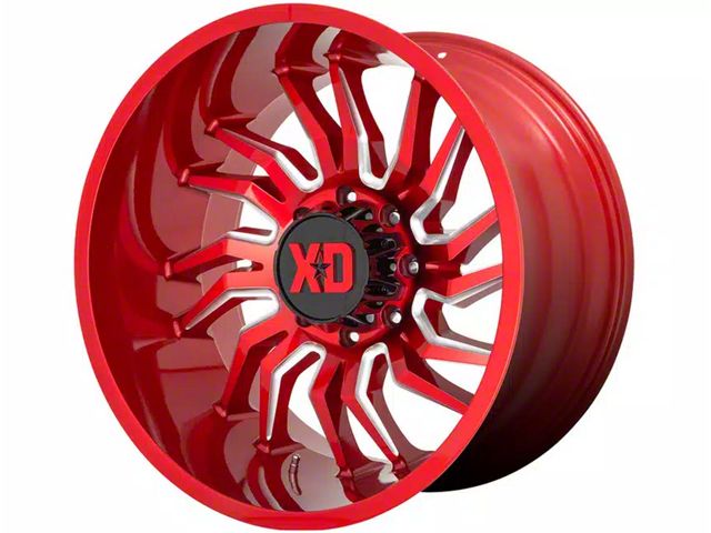 XD Tension Candy Red Milled 6-Lug Wheel; 22x10; -18mm Offset delivers a bold and modern aesthetic, ideal for enthusiasts seeking a refined yet assertive look for their vehicle. With its standout design and distinct finish, this wheel enhances the vehicle's visual stance and street presence. The precise craftsmanship and premium aluminum build reflect XD's dedication to quality and distinctive design. Whether parked or in motion, this wheel draws attention with its clean, aggressive styling.