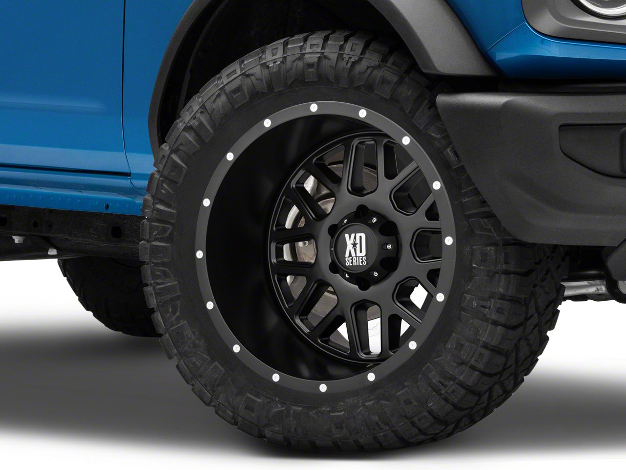 Application. This XD Grenade Satin Black 6-Lug Wheel; 20x9; 0mm Offset with a backspace of 5 Inch, 127mm; and bolt pattern of 6 x 139.7mm (6 x 5.5-Inch), contributes to alignment, driving stability, and ensures a perfect fit with the vehicle model. Designed to fit the 2021-2026 Bronco, Excluding Raptor. Sold individually.