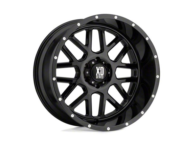 XD Grenade Gloss Black Wheel; 20x10 The XD Grenade Gloss Black Wheel combines a sleek, sophisticated design with premium construction that enhances the visual appeal and complements a wide range of vehicle styles. This wheel is perfect for those seeking to make a bold statement while maintaining elegance and robustness.