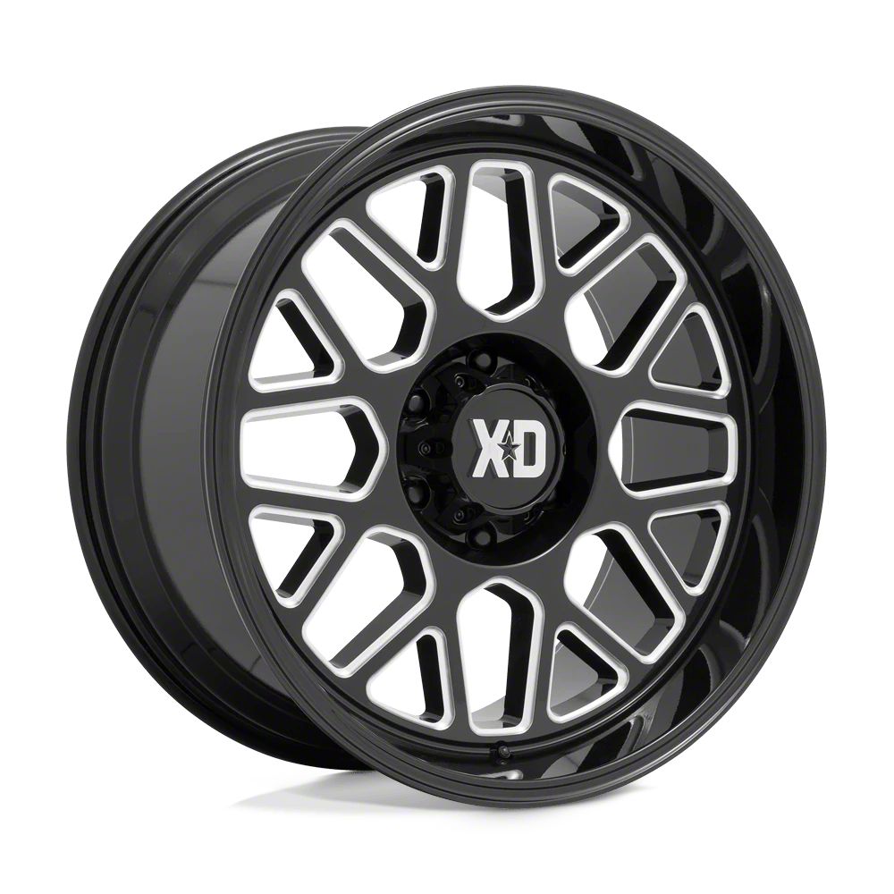 XD Grenade 2 Gloss Black Milled Wheel; 20x12 The XD Grenade 2 Gloss Black Milled Wheel combines a sleek, sophisticated design with premium construction that enhances the visual appeal and complements a wide range of vehicle styles. This wheel is perfect for those seeking to make a bold statement while maintaining elegance and robustness.