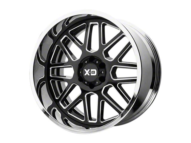 XD Grenade Gloss Black Milled Center with Chrome Lip Wheel; 20x10 The XD Grenade Gloss Black Milled Center with Chrome Lip Wheel combines a sleek, sophisticated design with premium construction that enhances the visual appeal and complements a wide range of vehicle styles. This wheel is perfect for those seeking to make a bold statement while maintaining elegance and robustness.