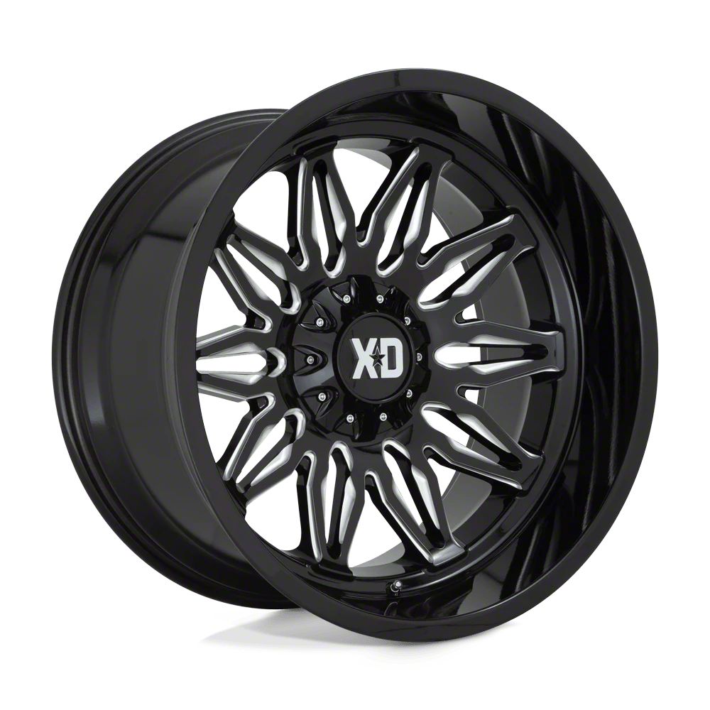 XD Gunner Gloss Black Milled Wheel; 22x12 The XD Gunner Gloss Black Milled Wheel combines a sleek, sophisticated design with premium construction that enhances the visual appeal and complements a wide range of vehicle styles. This wheel is perfect for those seeking to make a bold statement while maintaining elegance and robustness.
