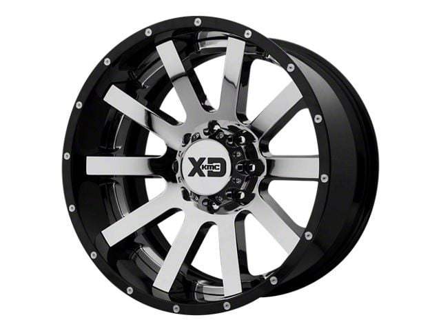XD Heist Chrome Center with Gloss Black Milled Lip Wheel; 22x12 The XD Heist Chrome Center with Gloss Black Milled Lip Wheel combines a sleek, sophisticated design with premium construction that enhances the visual appeal and complements a wide range of vehicle styles. This wheel is perfect for those seeking to make a bold statement while maintaining elegance and robustness.