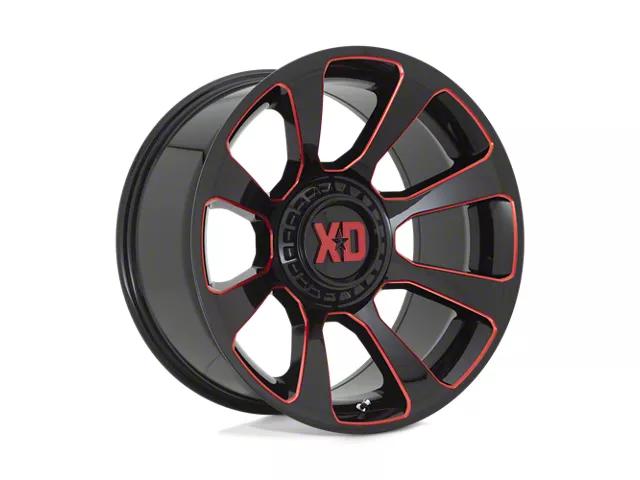 XD Reactor Gloss Black Milled with Red Tint Wheel; 20x9; 0mm Offset is a perfect blend of style and rugged design, making it a standout choice for those looking to enhance their vehicle's aesthetic appeal. Its bold, dark metallic finish pairs seamlessly with a wide variety of vehicle styles, offering both modernity and durability. Built by XD, this wheel is designed to elevate your vehicle's appearance with its robust presence.