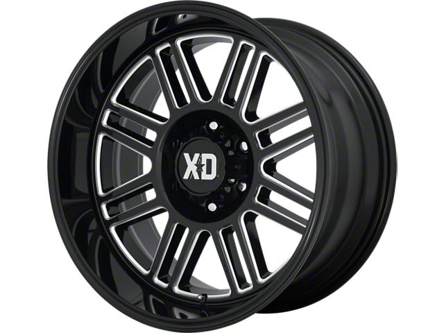XD Cage Gloss Black Milled 6-Lug Wheel; 20x10; -18mm Offset. Enhance your vehicle's look with the XD Cage Gloss Black Milled 6-Lug Wheel. This premium wheel adds a touch of elegance and class to your vehicle, complementing its sophisticated aesthetic.