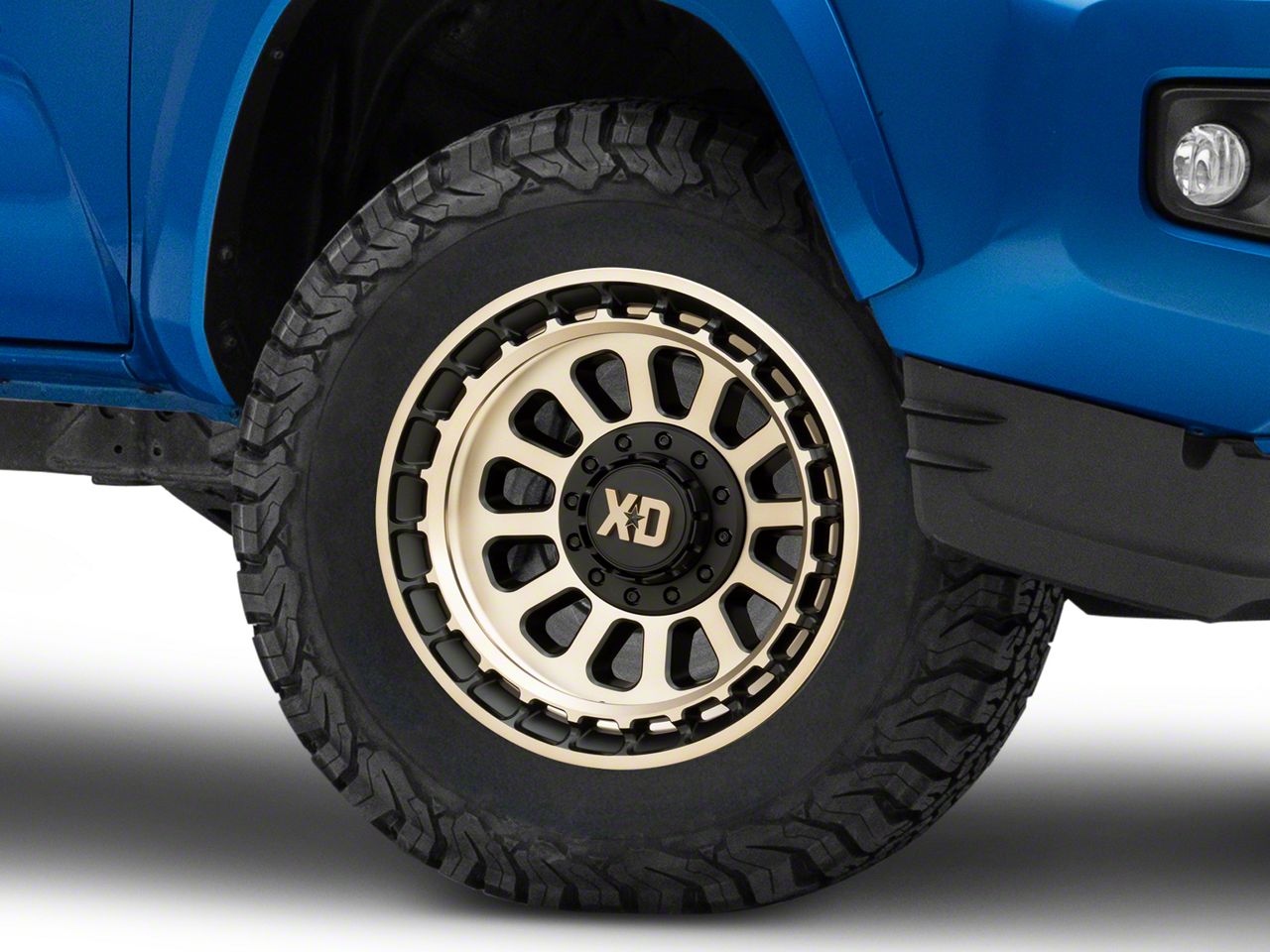 Application. The XD Omega Satin Black with Bronze Tint 6-Lug Wheel; 17x9; -12mm Offset, with a backspace of 4.528 Inch, 115.1mm and a bolt pattern of 6 x 139.7mm (6 x 5.5-Inch), is designed to enhance alignment and stability for a smooth driving experience. Specifically tailored to fit 2016-2023 Tacoma models, it ensures a perfect blend of style and functionality. Sold individually, this wheel is an ideal upgrade for your vehicle.