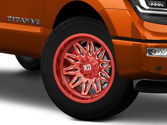 Application. This XD Gunner Candy Red Milled 6-Lug Wheel; 20x10; -18mm Offset with a backspace of 4.791 Inch, 121.7mm; and bolt pattern of 6 x 139.7mm (6 x 5.5-Inch) contributes to impeccable alignment and driving stability. Designed to fit 2017-2024 Titan models, sold individually.