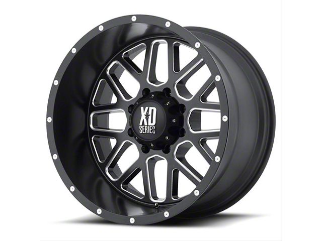 This 20x12 XD Grenade Satin Black Milled 6-Lug Wheel is completed in a high-quality satin black finish with steel milled accents to create an impressive appearance. There's a durable clear coat that protects against driving hazards.