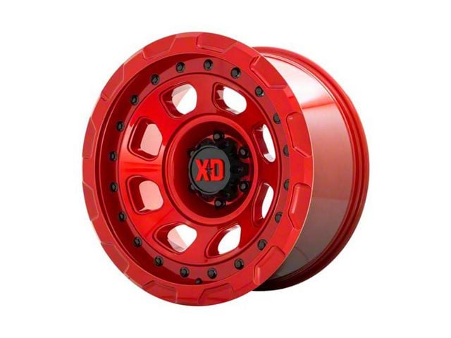 This 20x9 XD Storm Candy Red 6-Lug Wheel is completed in a high-quality, distinct candy red finish that will be the envy of everyone. There's a durable clear coat that protects against driving hazards.
