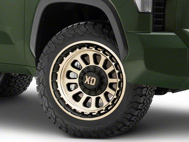 Application. This XD Omega Satin Black with Bronze Tint 6-Lug Wheel; 20x10; -18mm Offset, with a backspace of 4.791 Inch, 121.7mm and bolt pattern of 6 x 139.7mm (6 x 5.5-Inch), is designed to enhance alignment and driving stability, ensuring a perfect fit with the vehicle model. Specifically designed to fit 2022-2025 Tundra models, this wheel's specifications contribute to a seamless alignment and stable driving experience by ensuring the wheel fits perfectly within the vehicle's wheel well, reducing the risk of rubbing issues and optimizing handling characteristics. Sold individually.