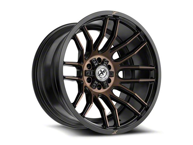 This 24x12 XF Offroad XF-232 Satin Black and Bronze Machined Double Dark Tint 6-Lug Wheel; 24x12; -44mm Offset is completed in a high-quality satin black finish with bronze machined double dark accents to make your wheel the envy of everyone. For added looks and durability, the wheels has a durable clear coat that withstand the rigors of daily driving.
