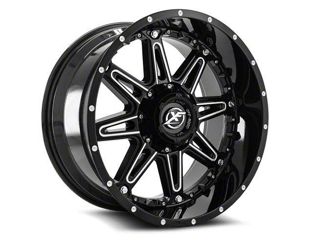 This 22x12 XF Offroad XF-217 Gloss Black and Milled with Black Inserts 6-Lug Wheel; 22x12; -44mm Offset is completed in a high-quality gloss black finish with steel milled accents, black inserts to make your wheel the envy of everyone. For added looks and durability, the wheels has a durable clear coat that withstand the rigors of daily driving.