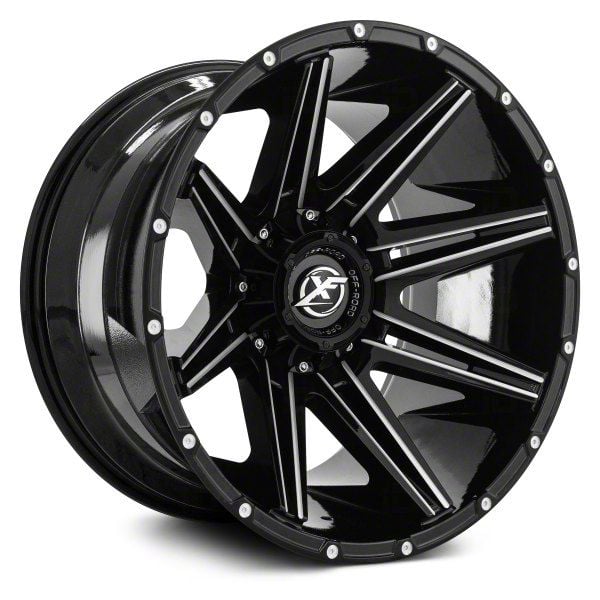 XF Offroad XF-220 Gloss Black Milled and Milled Dots 6-Lug Wheel; 17x9; 12mm Offset - Enhance your vehicle's style with the XF Offroad wheel. This wheel's distinctive design and finish complement your vehicle's aesthetics, making a bold statement. It's crafted to accentuate the unique character of your car, emphasizing a premium and robust appeal.