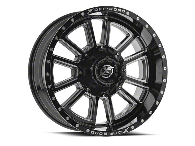 XF Offroad XF-225 Gloss Black and Milled Wheel; 20x12; -44mm OffsetThis wheel features a sleek and durable design, ideal for enhancing the aesthetic and style of your vehicle. Its quality craftsmanship ensures a perfect combination of form and function, suitable for any driver seeking a balance of style and dependability. Its high-quality finish ensures resistance against corrosion and wear over time. Designed for optimal visual appeal, this wheel complements a variety of vehicle styles.