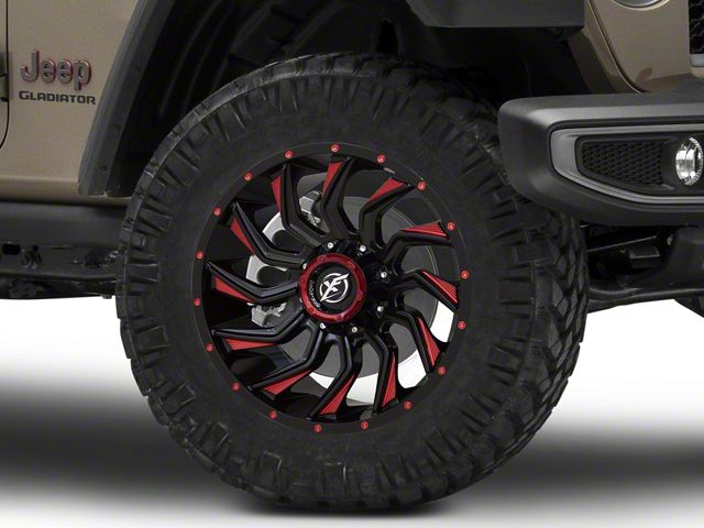 Application. This XF Offroad XF-224 Gloss Black Red Milled Wheel; 20x9 with a backspace of 5.473 Inch, 139.1mm; and bolt pattern of 5 x 127mm (5 x 5-Inch), contributes to alignment, driving stability, and ensures a perfect fit with the vehicle model. Designed to fit the 2020-2025 Jeep Gladiator JT. Sold individually.