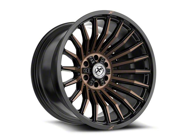 XF Offroad XF-231 Satin Black and Bronze Machined Double Dark Tint Wheel; 26x12; -44mm Offset is a visually striking choice, offering a combination of rugged durability and modern styling. Its design complements off-road and sporty vehicles alike, enhancing the overall aesthetic appeal.