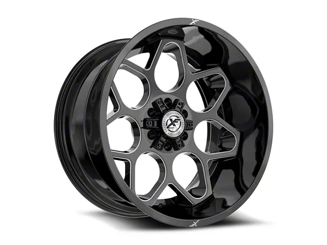 This 20x10 XF Offroad XF-233 Gloss Black and Milled Wheel; 20x10; -12mm Offset is completed in a high-quality gloss black finish with steel milled accents that will make everyone take notice. For added looks and strength, the wheel features a durable clear coat that withstands the rigors of daily driving.