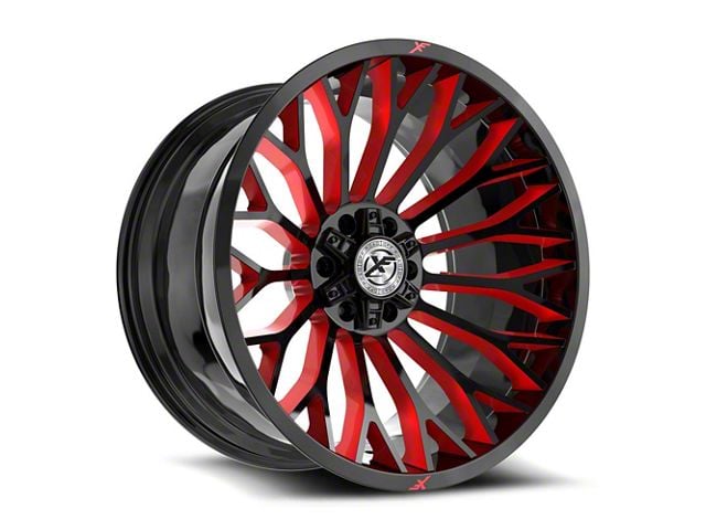 This 22x12 XF Offroad XF-237 Gloss Black and Red Milled Wheel; 22x12; -44mm Offset is completed in a high-quality gloss black finish with red accents to make your wheel the envy of everyone. For added looks and durability, the wheels has a durable clear coat that withstand the rigors of daily driving.