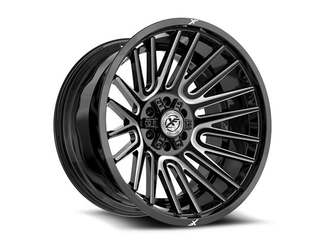 This 20x9 XF Offroad XF-234 Gloss Black and Milled Wheel; 20x9; 12mm Offset is completed in a high-quality gloss black finish with steel milled accents that will make everyone take notice. For added looks and strength, the wheel features a durable clear coat that withstands the rigors of daily driving.