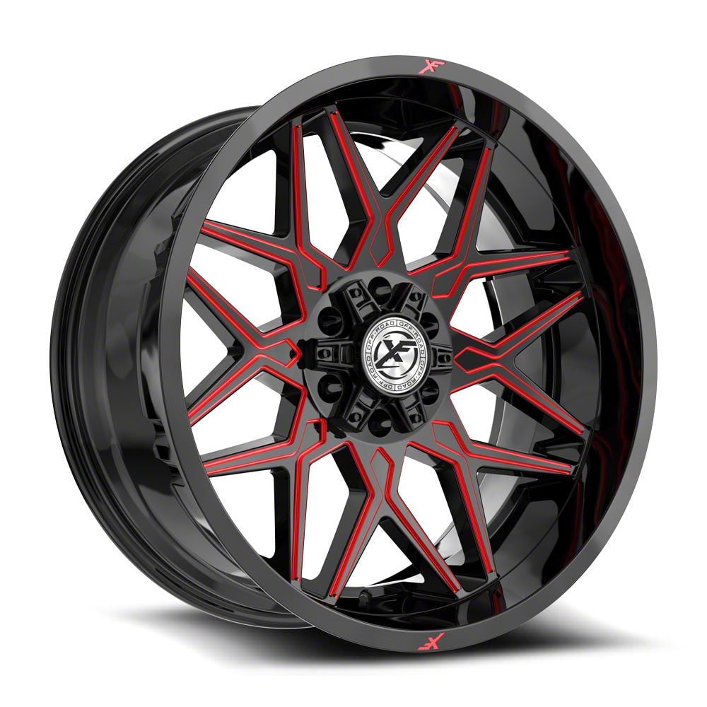 XF Offroad XF-238 Gloss Black and Red Milled Wheel; 18x9; 12mm Offset is a visually striking choice, offering a combination of rugged durability and modern styling. Its design complements off-road and sporty vehicles alike, enhancing the overall aesthetic appeal.