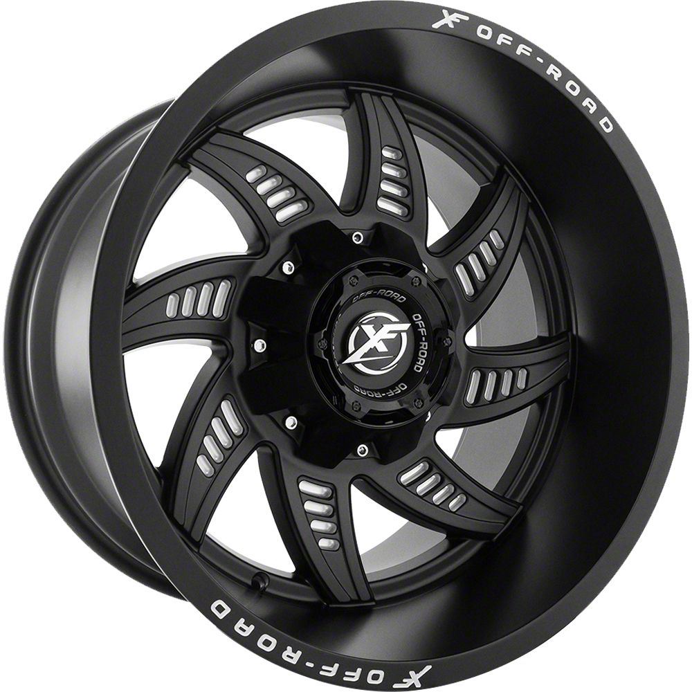 Matte Black Finish with Milled Accents. This XF Off-road Wheel has a high quality, black finish that features milled accents for an impressive appearance. For added protection and good looks, this Wheel is completed in a durable, matte clear coat that is tough enough to stand up against the hazards of everyday driving - including road chips and pitting.