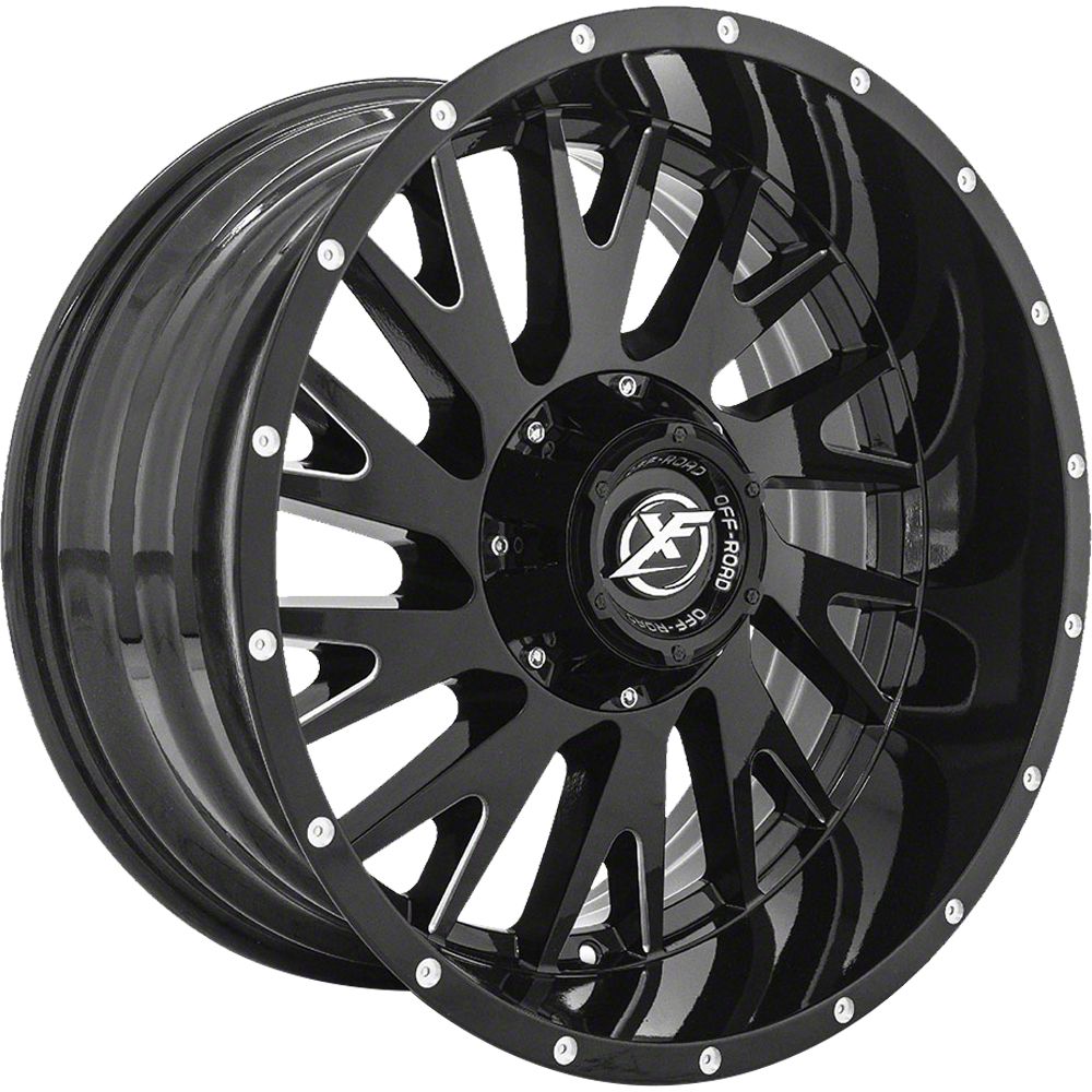 XF Offroad XF-221 Gloss Black Milled Wheel; 20x10. This wheel's stunning design is a testament to XF Offroad's commitment to aesthetic excellence. The unique style of the XF-221 Gloss Black Milled Wheel; 20x10 not only enhances your vehicle's look but also pairs seamlessly with a variety of vehicle designs. Its focus on appearance, without altering performance, makes it a distinct choice for car enthusiasts.