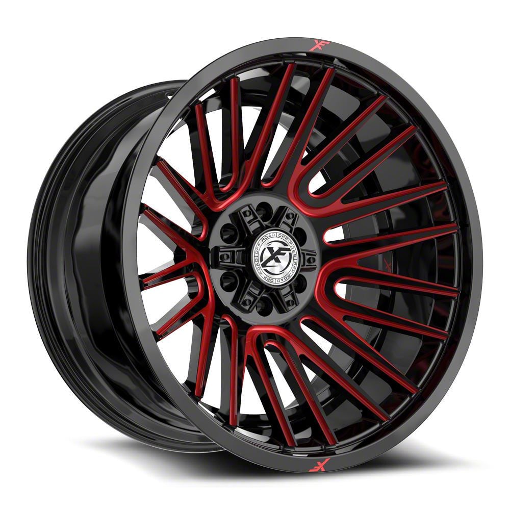 XF Offroad XF-234 Gloss Black and Red Machined Wheel; 24x12; -44mm OffsetThis wheel features a sleek and durable design, ideal for enhancing the aesthetic and style of your vehicle. Its quality craftsmanship ensures a perfect combination of form and function, suitable for any driver seeking a balance of style and dependability. Its high-quality finish ensures resistance against corrosion and wear over time. Designed for optimal visual appeal, this wheel complements a variety of vehicle styles.